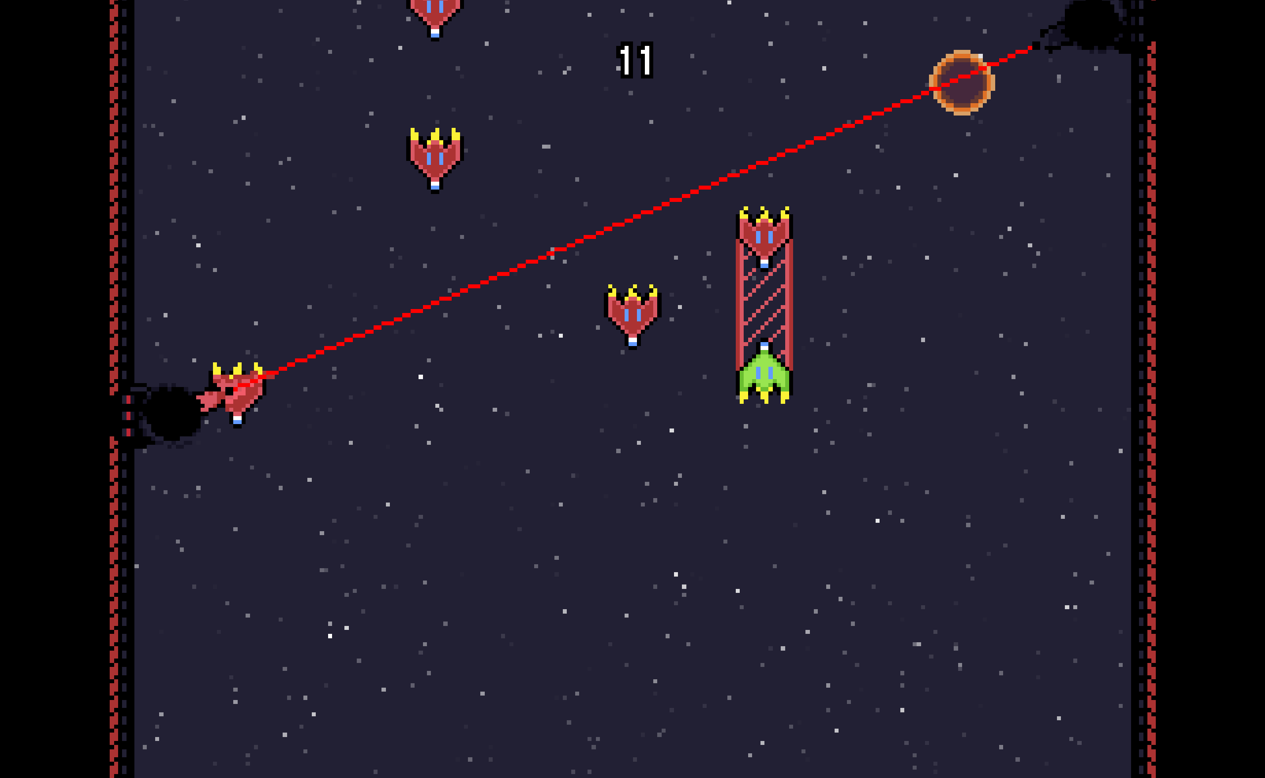 - Red ship - Enemy, destroying them gives you points, letting them pass results in a penalty